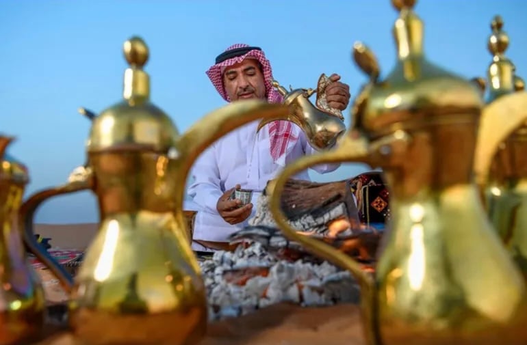 "مرحبًا ألف " هو ما تقوله القهوة حين تستقبل ضيوفها، تُسكب بكرمٍ في دلالها الذهبية، لتروي قصص الضيافة السعودية العريقة، ليست مجرد مشروب بل موروث ثقافي يجسد قيم الكرم والأصالة المتجذرة في تاريخ المملكة.